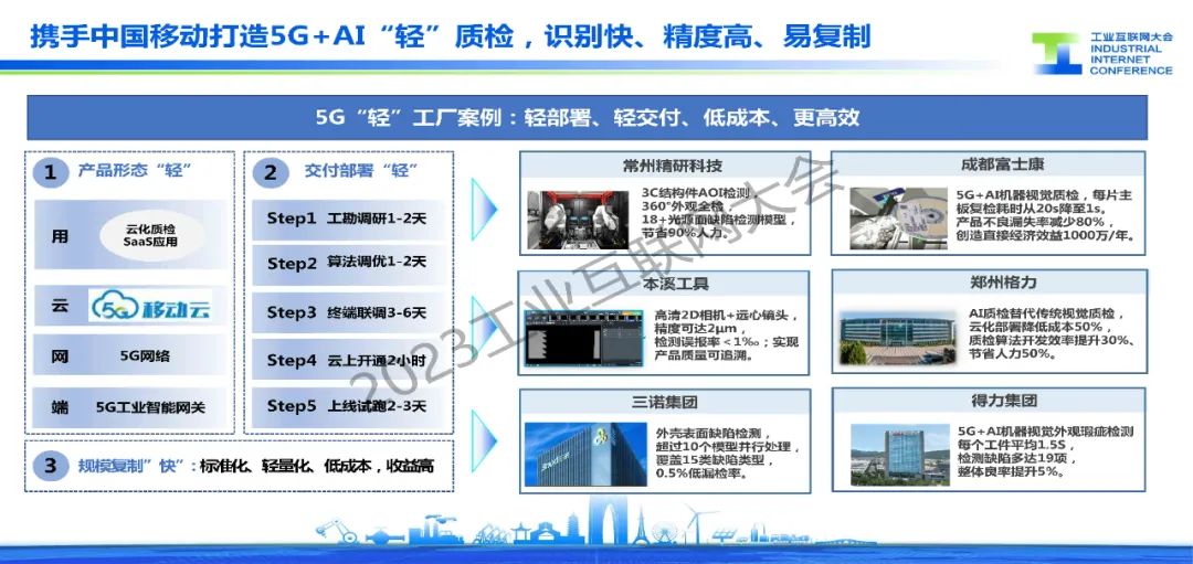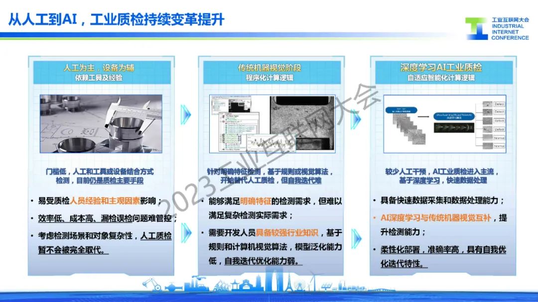 鐘致民介紹,5G+視覺(jué)AI工業(yè)質(zhì)檢,對(duì)生產(chǎn)制造是至關(guān)重要,是保證整個(gè)商品的制造和最終出廠的成品標(biāo)準(zhǔn)化。隨著工業(yè)質(zhì)檢從人工到AI持續(xù)變革提升,AI工業(yè)質(zhì)檢進(jìn)入主流,基于深度學(xué)習(xí),快速數(shù)據(jù)處理。