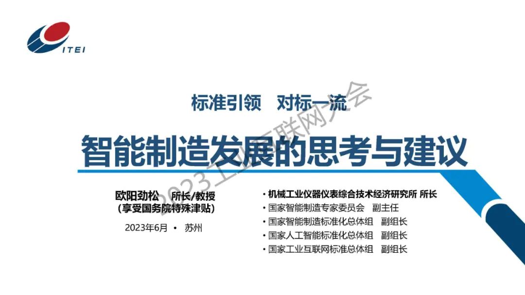 6月16日,在2023工業(yè)互聯(lián)網(wǎng)大會“工業(yè)互聯(lián)網(wǎng)與裝備制造行業(yè)融合應(yīng)用論壇”上,機(jī)械工業(yè)儀器儀表綜合技術(shù)經(jīng)濟(jì)研究所所長、國家智能制造專家委員會副主任歐陽勁松發(fā)表了《智能制造發(fā)展的思考與建議》的主題演講。