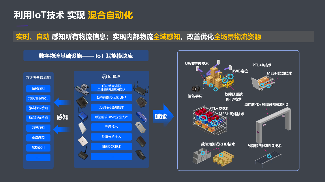 供應鏈資源數字化。部署實施用于精準定位、過程追蹤、信息感知等場景的IoT智能硬件與裝備。主要包括超高頻RFID模塊與技術、無線Mesh網絡模塊與技術、高精度UWB定位模塊與技術,并應用以上技術和智能硬件模塊,實現內部供應鏈系統資源全要素數字化升級改造,完成內部供應鏈系統IoT數字化場景賦能,建立供應鏈動態資源“池”。