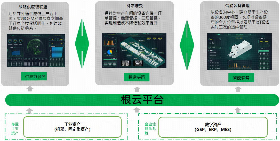 基于根云工業互聯網平臺強大的連接能力,樹根互聯基于設備物聯數據、人員設備信息,工藝、作業數據以及對人、機、料、法、環的鏈接,協同生態伙伴提供訂單可視化、工時定額、焊接管理、三現管理、成本管理、設備OEE、能源管理、質量管理等產品,實現智能云工廠與閉環供應鏈的有效連接,主要表現在以下方面:
