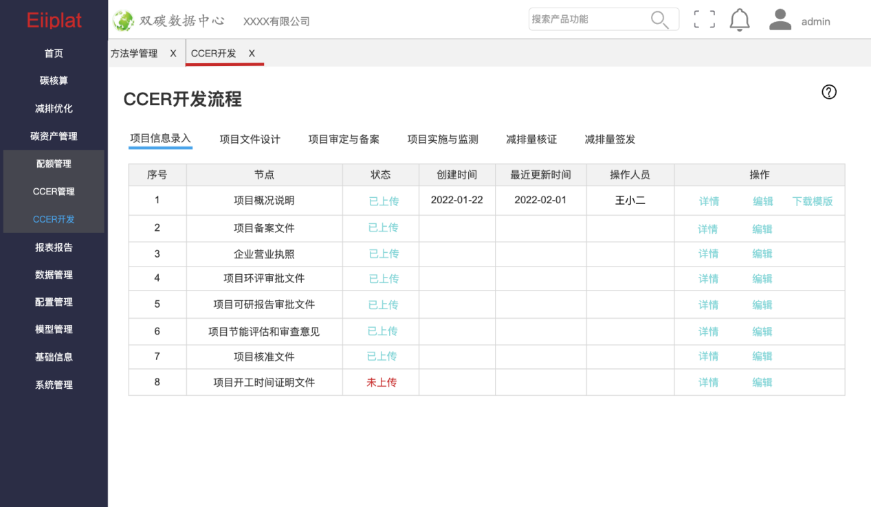 摸清碳家底。雙碳數據中心積累了大量方法學,不同場景下的園區可結合自身的實際情況進行信息填報確認,系統自動篩選出適用的方法學及對應的項目邊界、基準線情景,通過對相應的參數指標進行監測,能夠計算出園區實際的碳排放量和碳減排量,從而摸清碳家底。