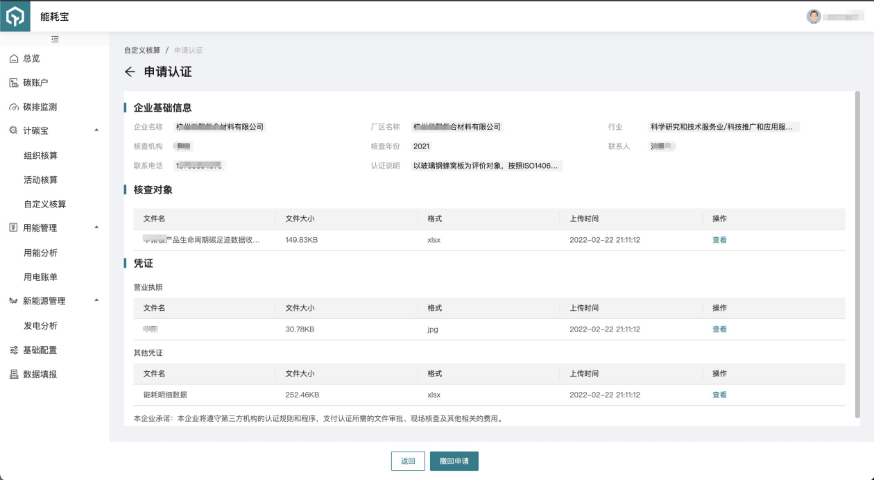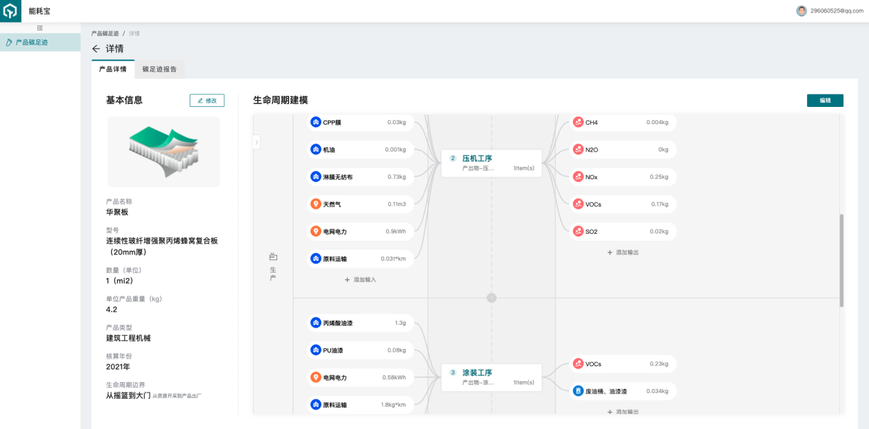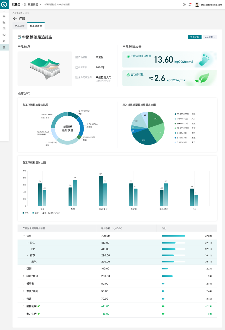 基于碳足跡建模和核算結(jié)果,進一步,通過在線認證工具鏈接的第三方認證公司,完成產(chǎn)品碳足跡的在線認證。最后通過能耗寶進行報告、證書和標簽的生成。