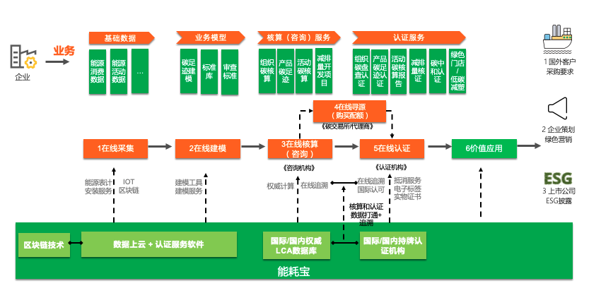 企業(yè)通過購買和使用的一站式碳足跡服務(wù),將傳統(tǒng)的數(shù)據(jù)收集、產(chǎn)品碳排放模型構(gòu)建、產(chǎn)品碳足跡核算、產(chǎn)品碳足跡認證以及后續(xù)綠色營銷,能耗寶通過數(shù)字化技術(shù),實現(xiàn)數(shù)據(jù)收集、產(chǎn)品碳排放模型構(gòu)建、產(chǎn)品碳足跡核算、產(chǎn)品碳足跡認證等一站式在線服務(wù),助力企業(yè)實現(xiàn)碳足跡的低成本核算認證以及產(chǎn)品綠色營銷服務(wù)。