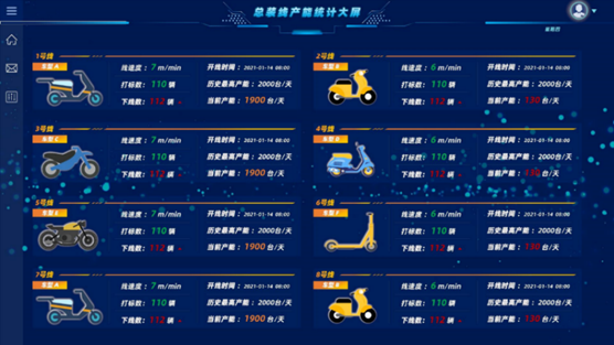 應用場景介紹:對電動車總裝車間的產線進行全參數監測,監測參數包括產能、能耗、合格率、計劃完成率、生產節拍等關鍵參數;通過對產線控制系統采用5G網關接入,實現產線的裝配節拍等參數采集;在下線處安裝激光對射裝置,實時采集下線成品數量,并與車架打標機的實時打標數量進行對比;通過安裝電表,實現產線、設備的能耗實時監測,實現整條產線的產能、能耗、合格率、計劃完成率、生產節拍等關鍵參數的實時監測。