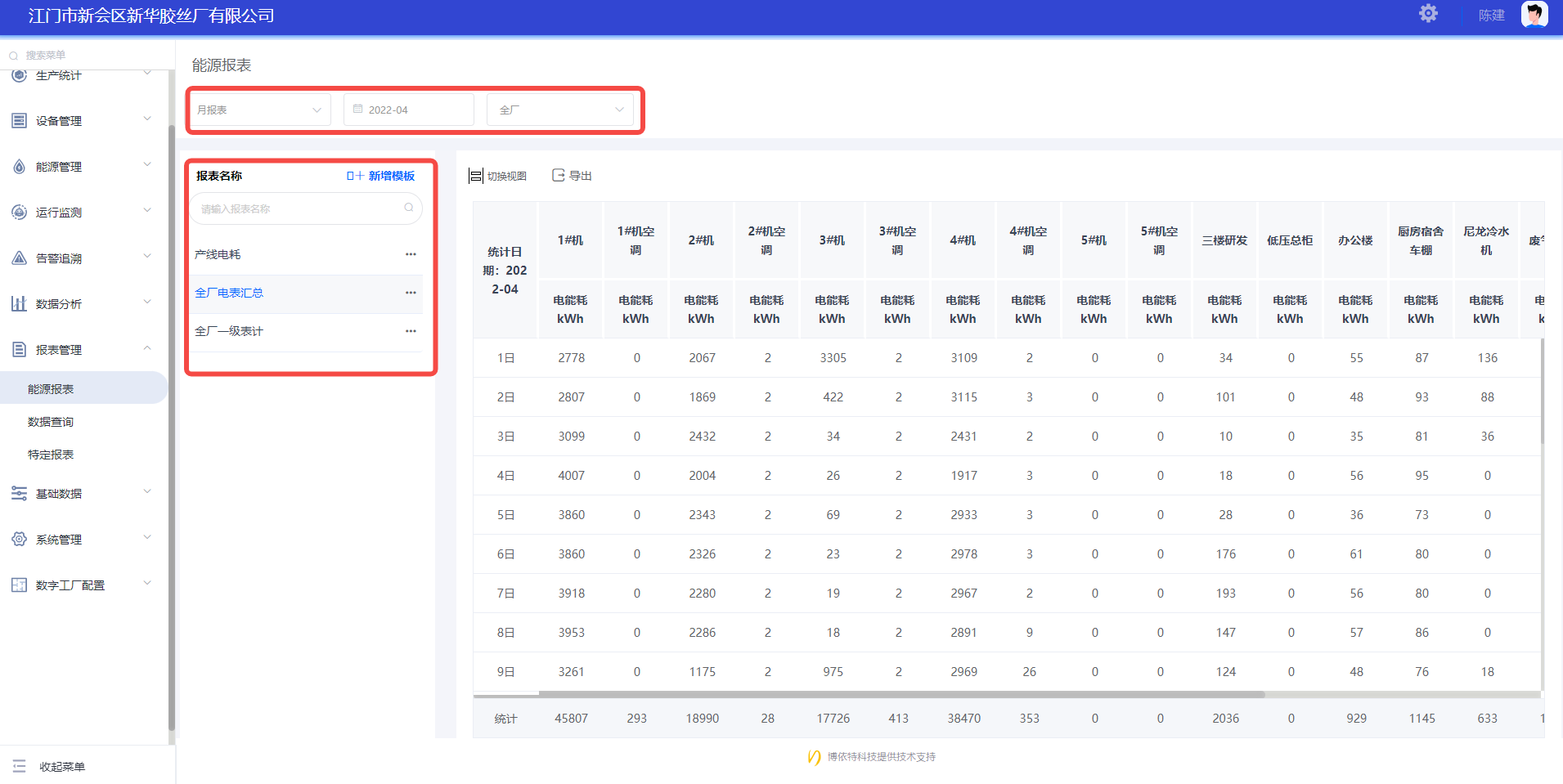 報表是新華膠絲廠生產數(shù)據匯總的主要形式。報表管理模塊分為定制化報表和自定義報表兩大類別,實現(xiàn)自動抄表;能耗報表自動生成;并支持用戶進行自定義報表。報表管理模塊能夠有效解決企業(yè)生產報表種類、數(shù)據量繁多,統(tǒng)計耗時長,工作量大等問題,同時能夠提高報表數(shù)據的準確性和實時性。(報表支持EXCEL導出)。