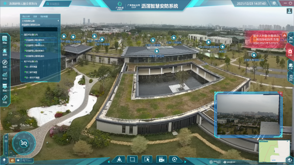 廣州凈水公司瀝滘凈水廠面向水務行業(yè)的需求,建設智慧安防系統(tǒng),構(gòu)建以實景地圖為載體的的智慧安全防護體系,支撐基于“無人值守、少人巡檢”智慧凈水廠的落地。其本質(zhì)在于完成凈水廠安全防護智慧化全面升級,實現(xiàn)園區(qū)安全管理的智能化、標準化及規(guī)范化,達到宏觀細節(jié)、虛實結(jié)合、內(nèi)外互補的“四圖合一”增強效果,以提升凈水廠安全管理要素、安全管理決策等全方位的智慧化水平,形成資源富集、場景豐富、告警閉環(huán)、高低聯(lián)動的安防生態(tài)。