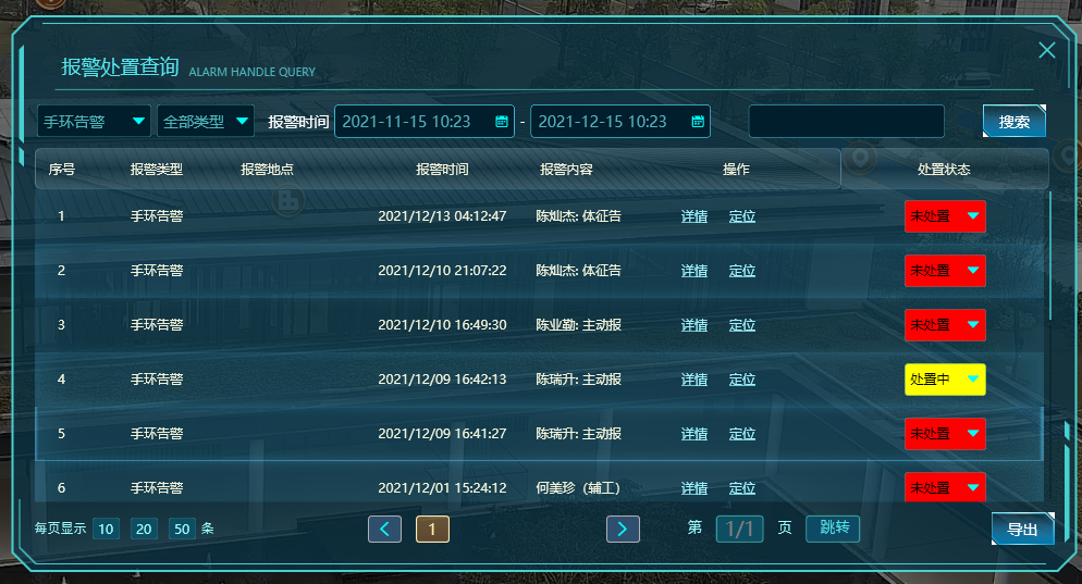 系統(tǒng)基于各種應用場景,匯聚了人臉、車輛、越界、安全帽、煙火、水浸、手環(huán)、消防等告警信息,可按告警類型對時間、地點、內(nèi)容進行查詢、處置,實時定位到攝像頭。