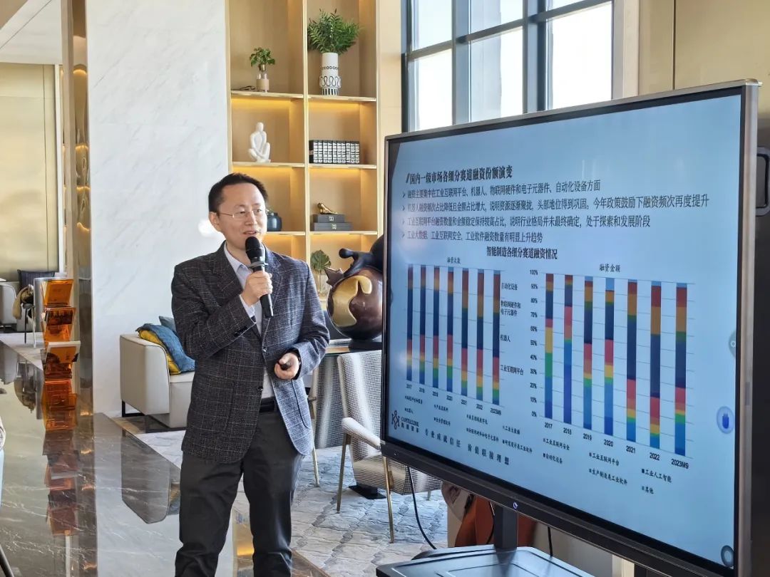 隨后,凱聯(lián)資本董事總經(jīng)理姬可鵬分享了最新的工業(yè)互聯(lián)網(wǎng)投融資趨勢。根據(jù)企名片庫數(shù)據(jù)分析,工業(yè)互聯(lián)網(wǎng)相關(guān)行業(yè)一級市場(上市前)的年融資規(guī)模從2017年的75億增長到>200億,2020-2022年持續(xù)保持在高位,融資主要集中在工業(yè)互聯(lián)網(wǎng)平臺、機器人、物聯(lián)網(wǎng)硬件和電子元器件、自動化設(shè)備方面。姬總表示,凱聯(lián)資本未來的重點投資方向?qū)⒓性诖蛲ㄔO(shè)計和制造全流程的工業(yè)軟件和平臺、新一代的數(shù)字化智能制造裝備,以及打通上下游、實現(xiàn)高效協(xié)作的供應(yīng)鏈軟件和平臺。