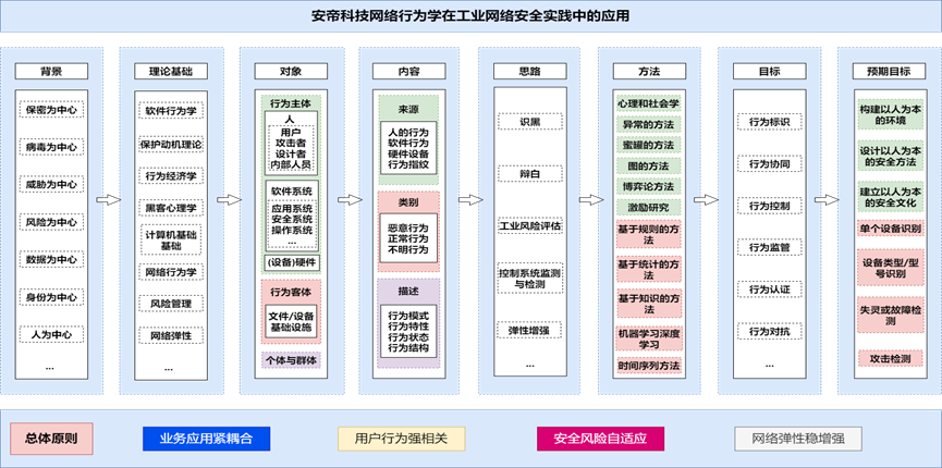 基于安帝科技創(chuàng)立的初衷和使命,結(jié)合當(dāng)前網(wǎng)絡(luò)安全在OT側(cè)發(fā)展的困境,我們選擇網(wǎng)絡(luò)行為學(xué)作為推動(dòng)OT網(wǎng)絡(luò)安全理論、技術(shù)、產(chǎn)品、方案、服務(wù)等發(fā)展的方法論指導(dǎo)。網(wǎng)絡(luò)行為學(xué)在OT側(cè)網(wǎng)絡(luò)安全能力建設(shè)中落地應(yīng)用,具體就是對(duì)主體(人、設(shè)備、軟件、系統(tǒng))的行為的分析評(píng)估,以及對(duì)客體或行為的受體(系統(tǒng)、軟件、硬件)的監(jiān)測(cè)分析,用以甄別異常、故障、網(wǎng)絡(luò)攻擊。試圖通過與用戶業(yè)務(wù)場(chǎng)景、業(yè)務(wù)要素的融合,發(fā)現(xiàn)業(yè)務(wù)行為的模式、特點(diǎn)、規(guī)律,從而建立正常業(yè)務(wù)行為的模型,達(dá)成拒絕一切非業(yè)務(wù)模型行為的目的。