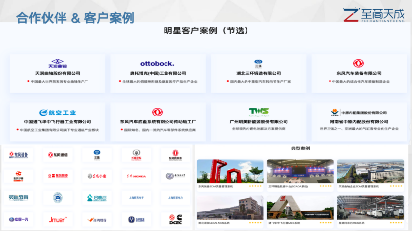 公司與東風汽車、青量科技均達成了戰略合作伙伴,把東風汽車50多年的寶貴制造管理經驗復制出來,服務更多中小型制造企業;聯合青量合作打造面向計量3.0時代的,物聯網智能量儀檢具。讓質量檢測數據采集更簡單,讓質量管理更便捷,讓質量監控工智能。