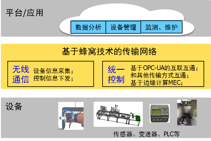 圖3 基于蜂窩技術的工業傳輸解決方案總體架構