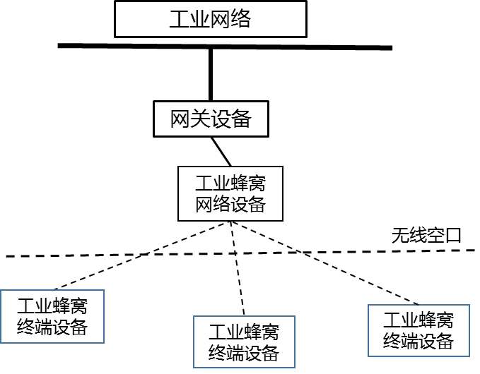 5G蜂窩網絡支持星型拓撲結構,包含一個中心(工業蜂窩網絡設備)以及多個工業設備(工業蜂窩終端設備)。終端設備通過無線空口與網絡設備交互完成數據通信。