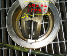 1號潤滑油過濾器出口第1個出口逆止閥,發(fā)現(xiàn)逆止閥半邊密封條脫落,造成供油管堵塞。