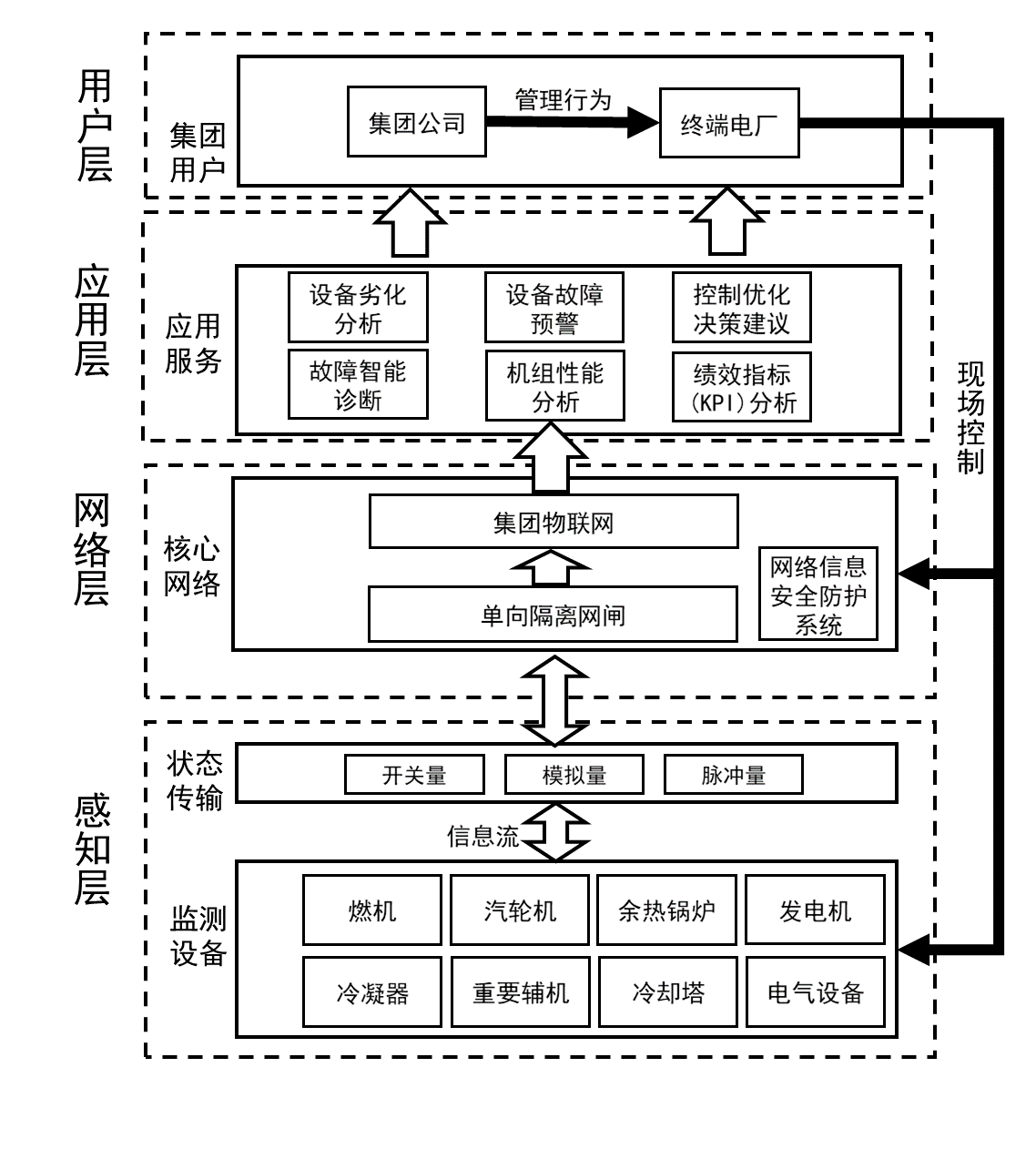 用戶層主要是數(shù)據(jù)中心面向的信息輸出對象,主要包括各個電廠和集團公司。對于各個電廠,數(shù)據(jù)中心輸出信息主要側(cè)重于設備故障、性能劣化和熱效率分析等信息。對于集團公司的服務更加側(cè)重于信息的集合和關鍵績效指標的匯報。